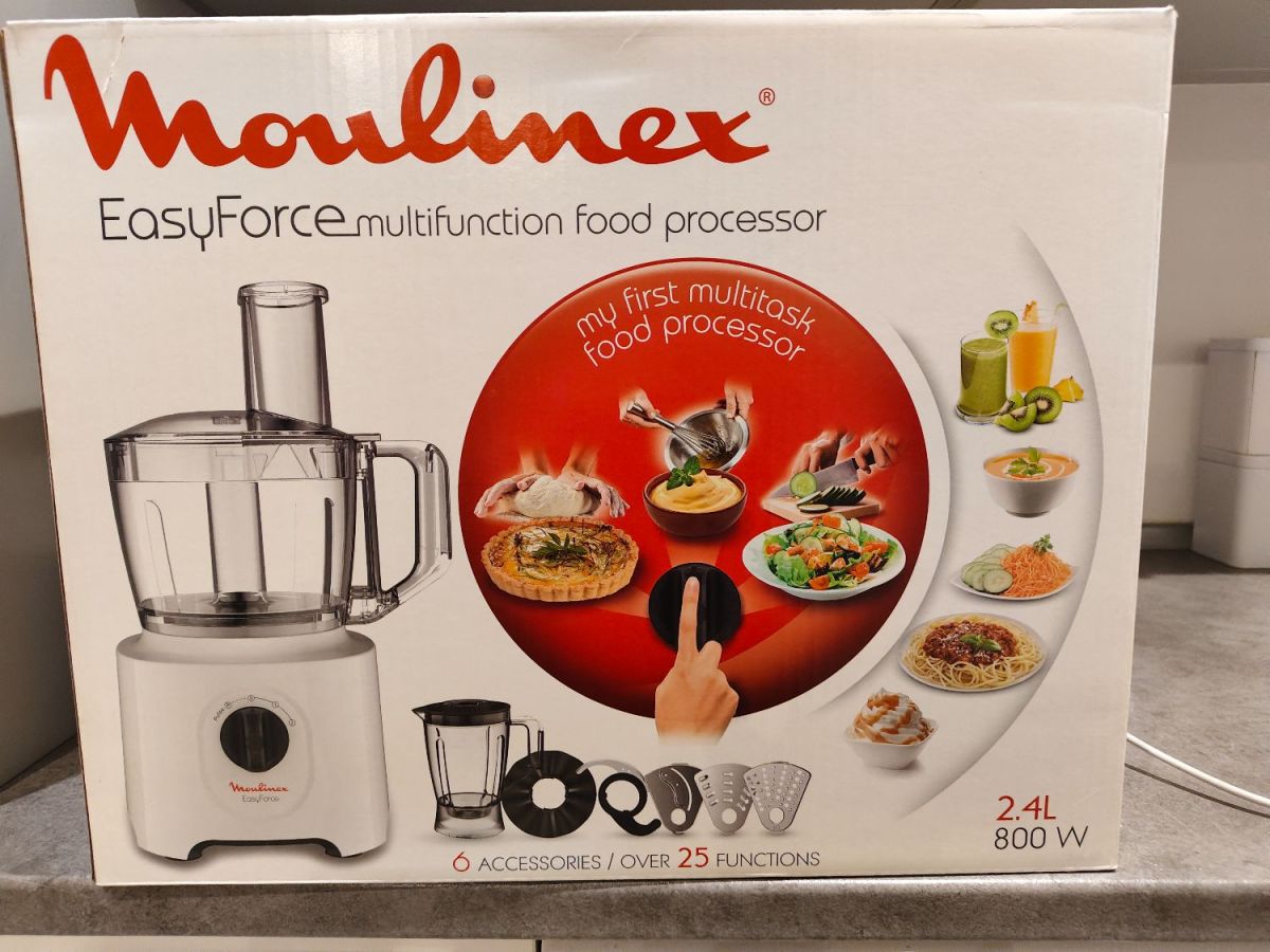 Moulinex 800W Quick and Easy Force Food Processor White and Clear 2.4 Liter FP247127. Comes with original box and user manual. Great condition. 120SAR, Cash, pick up Ar Rabi. Originally bought for 380SAR, 1.5years old.