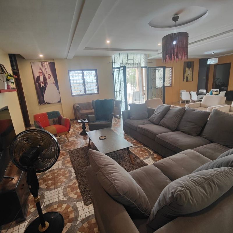 FOR SALE IN BAGUIDA MORE PRECISELY IN THE BCEAO CITY BEACH SIDE WITH LAND TITLE ON A LOT. PRICE 350 MILION *Composition*: Living room, library area and dining area. 2 kitchens, one of which is equipped with a central island overlooking the dining area. 5 air-conditioned bedrooms, one of which is ..1 storage room and a laundry room adjoining the kitchen and garage 1 Office 1 Caretaker's Room 3 Bathrooms 4 Toilets 1 Garage for two cars 1 Converted Roof Top. Selling price: 350 million FCFA negotiable. Possibility of selling it with its furniture.