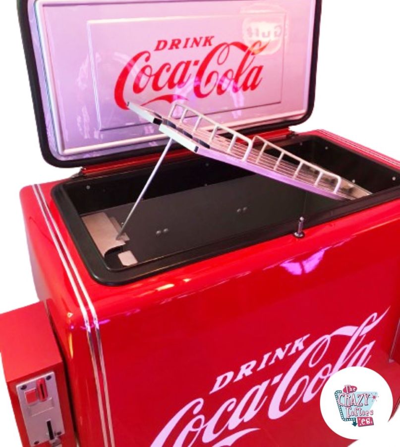 Apresentamos-lhe esta maravilhosa restauração de um Máquina de venda automática retrô da Coca-Cola do ano 68. A maior parte do mecanismo de venda é feito de zamak, por isso é muito difícil encontrar hoje essas peças completas (não podem ser reparadas), exceto os carrosséis, que são feitos de ferro. Todo o mecanismo de refrigeração é o original (e funciona perfeitamente), assim como toda a estrutura e carroceria, trabalhamos muito para tentar não profanar esta obra de arte com peças novas (não originais de 68). Foi adaptado um porta-moedas atualizado para poder funcionar com moedas de 1€ e ser funcional, mas procurámos respeitar ao máximo o design original.