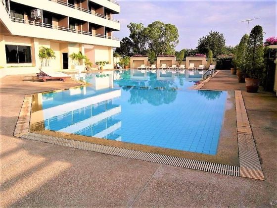 Vista a la piscina en el condominio AngketPhatthaya
