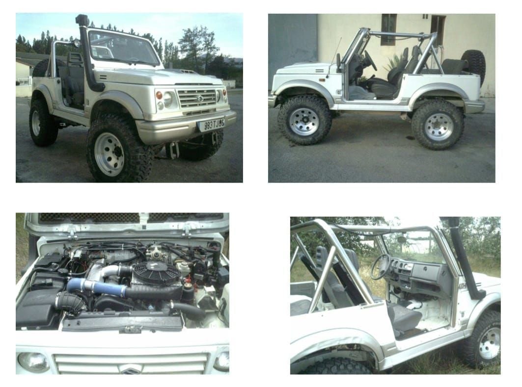 PRODUIT EXCEPTIONNEL ET UNIQUE, ENTIÈREMENT ÉQUIPÉ, PRÊT À VOUS PROFITER DE SENSATIONS FORTES. Ce véhicule tout-terrain a été entièrement RECONSTRUCTÉ pour une utilisation EXTRÊME EN TOUT-TERRAIN. Assemblé par des PROFESSIONNELS... PUISSANCE PHÉNOMÉNALE. Immatriculé et assuré, en parfait état. 5 jantes en aluminium 30.9.5.15 avec pneus MICKEY THOMPSON 31.10.5.15. Moteur PEUGEOT 306TD, 130 ch diesel, pompe d'injection Bosch, turbo Xantia 2", blocage de différentiel pneumatique avant et arrière, essieux avant et arrière renforcés, compresseur pneumatique, rehausse de caisse, suspension renforcée, amortisseurs à gaz, double embrayage arrière, échappement en acier inoxydable 3" + silencieux latéral, ventilateur assisté, intercooler Omega + ventilateur. Embrayage 306 TD renforcé, boîte de transfert courte, ventilateur renforcé, phares longue portée, arceaux de sécurité en acier inoxydable 3", snorkel, carrosserie en bon état.