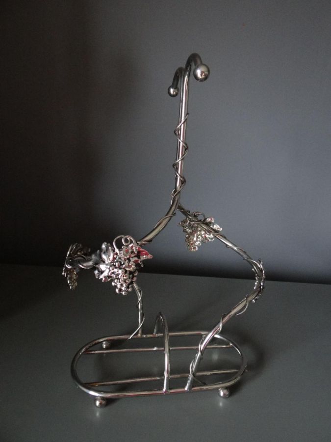 Porte Bouteille En Métal Argenté Silea /Année 80