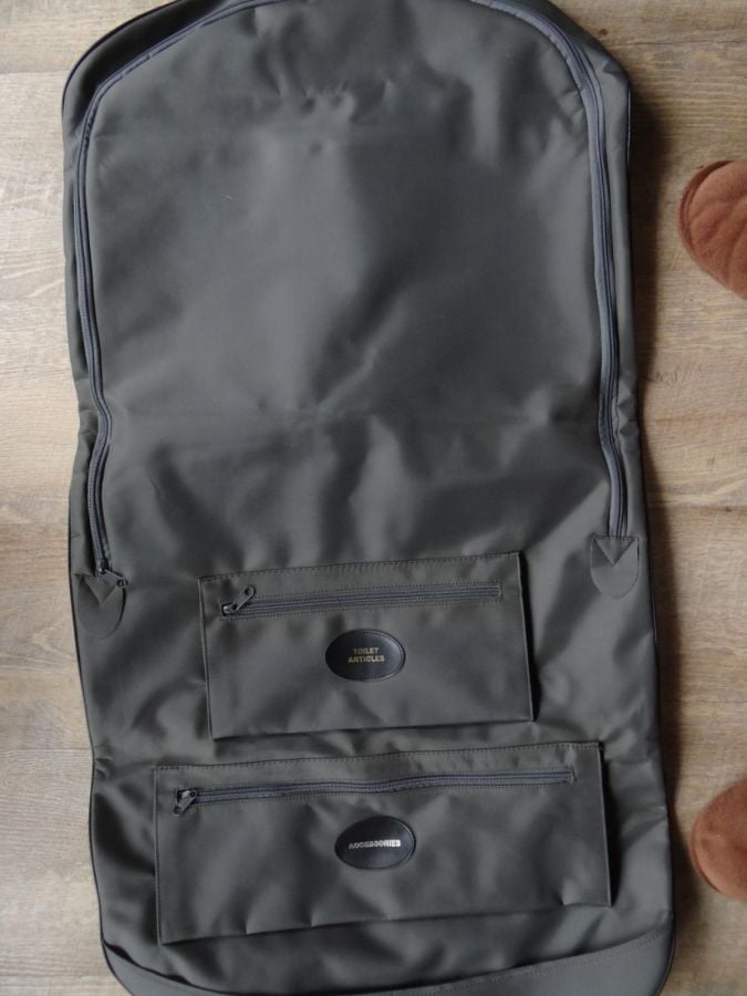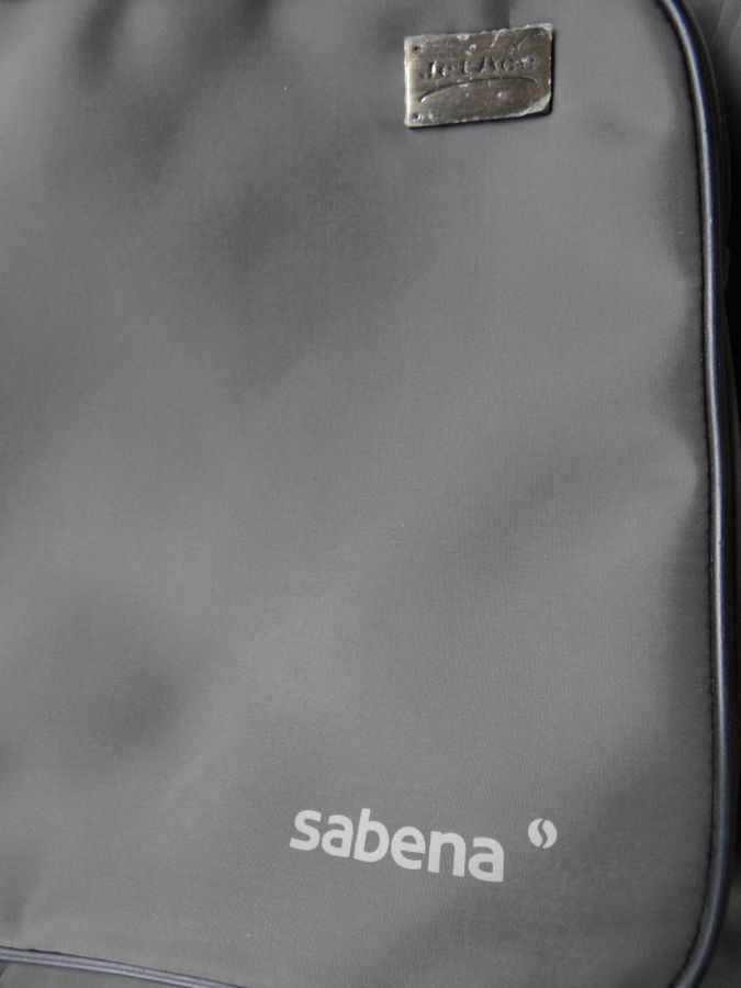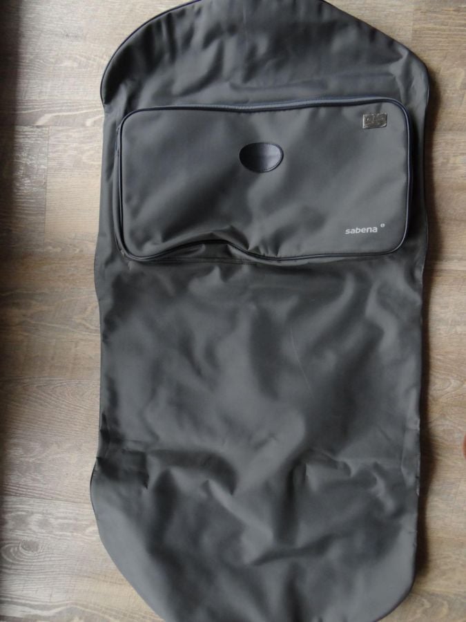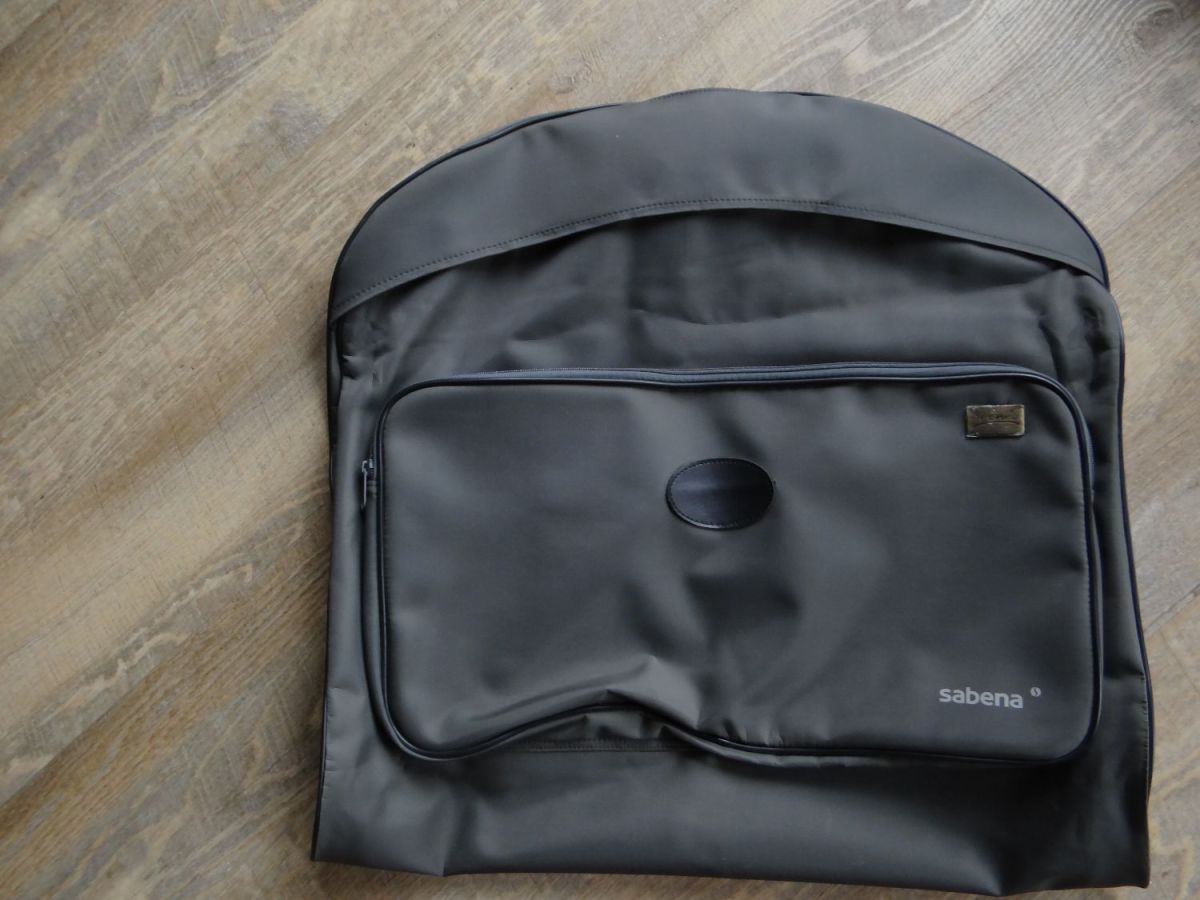 BON ETAT,,housse vintage ,une trentaine d annees, donc vecue mais pas utilisee, compagnie aerienne SABENA, modele jet ace,plusieurs compartiments, voire photos, dim depliee 110 cms x 55.