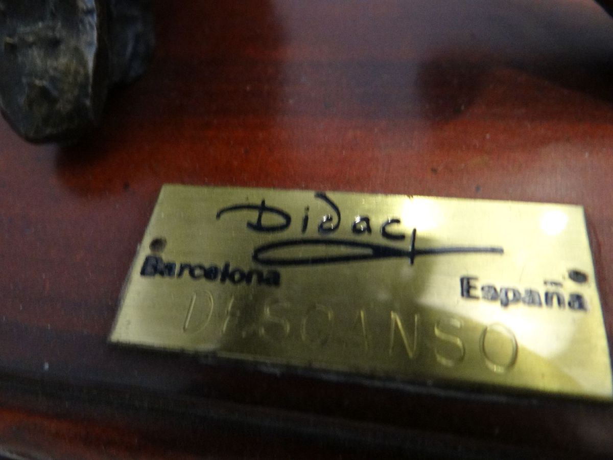 TRES BON ETAT, Ballerine, ballet, sculpture en bronze signée de Diego Masana i Majó, Dídac, sculpteur espagnol, figure marquante du modernisme, Sculpture en bronze signée de Diego Masana i Majó, la ballerine. Titre : Descanso (repos). La sculpture est sur son socle en bois. Hauteur avec la base : 28 cm. Hauteur sans la base : 24,5 cm. Excellent état. Diego Masana i Majó avec le pseudo de Dídac (1868-1939) était un sculpteur catalan du mouvement artistique du modernisme