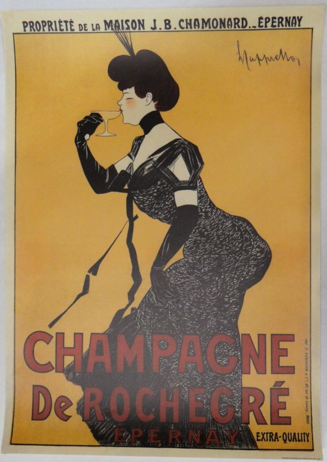 REPRINT,reimpression,ancienne originale de publicité de Leonetto Cappiello datant de 1902 - Champagne De Rochegré .epernay,TRES BON ETAT legeres traces sur marge,Papier mat supérieur, Encre de qualité.dim 70 x50 cms , TRES BON ETAT , voire comme NEUF ....envoi france possible en sus