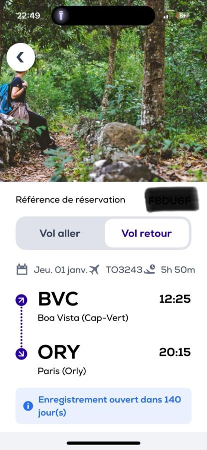 Bonjour à tous, J'espère ne pas vous importuner avec cette annonce, je souhaite revendre mon billet d'avion Orly-Boa Vista A/R le 21 décembre 2025, retour le 1er janvier 2026, vol opéré par la compagnie Transavia. Le prix d'origine est de 1144 euros, je le propose à 850 euros, soit 25% plus bas que le tarif initial. Les frais de changement de nom de 130 euros seront à ma charge. Si vous êtes intéressé ou connaissez quelqu'un susceptible de l'être je suis à votre disposition en message privé. Bonne journée!