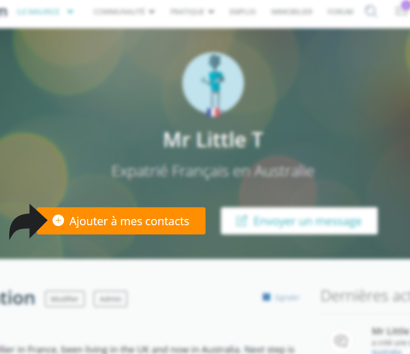 Pour communiquer par messagerie privée avec d'autres membres de la communauté, vous pouvez les ajouter dans vos contacts. Pour cela, cliquez sur le bouton « Ajouter à mes contacts » sur le profil de l'utilisateur. Vous devrez attendre la confirmation du membre pour qu'il figure dans votre liste de contacts.