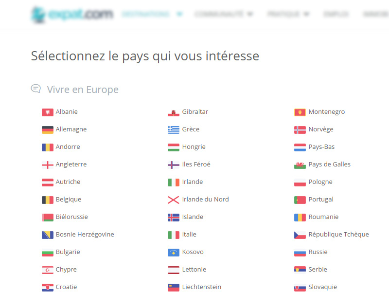 Expat.com propose des espaces dédiés à chaque destination, qu'il s'agisse d'un pays, d'une région ou d'une ville. Si vous habitez déjà à l'étranger ou avez en tête une destination pour votre expatriation, vous pouvez utiliser la barre de recherche, en haut de l'écran. Vous pouvez également accéder ici aux destinations disponibles.
