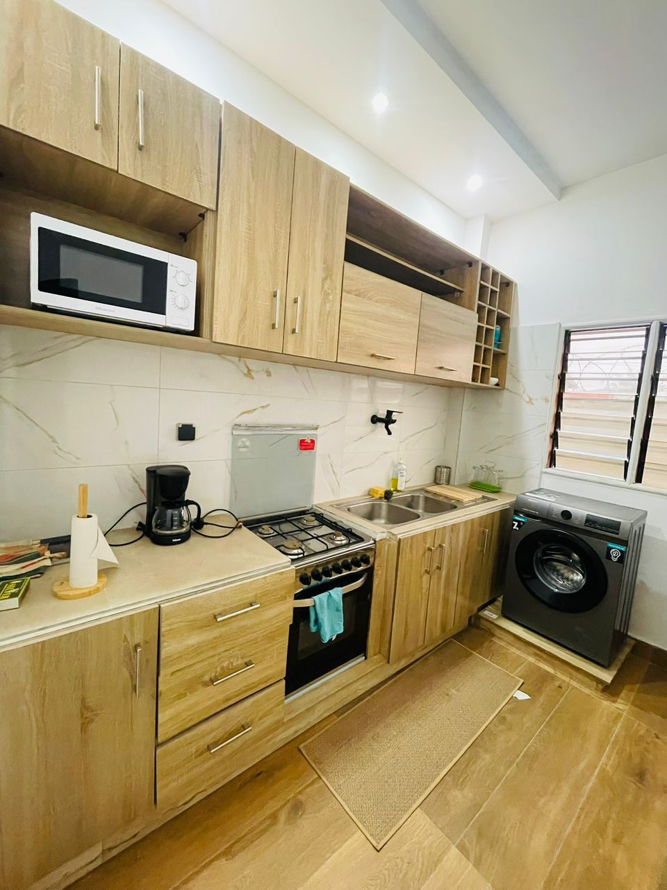 Cet appartement spacieux et climatisé vous propose : * 3 chambres avec Smart TV * Salon avec TV et services de streaming * Cuisine équipée (lave-linge, micro-ondes, frigo) * 2 salles de bains avec chauffe-eau * Terrasse * Wi-Fi gratuit A seulement 8 minutes à pied de la plage et 2 minutes en voiture, profitez d'un emplacement idéal.
